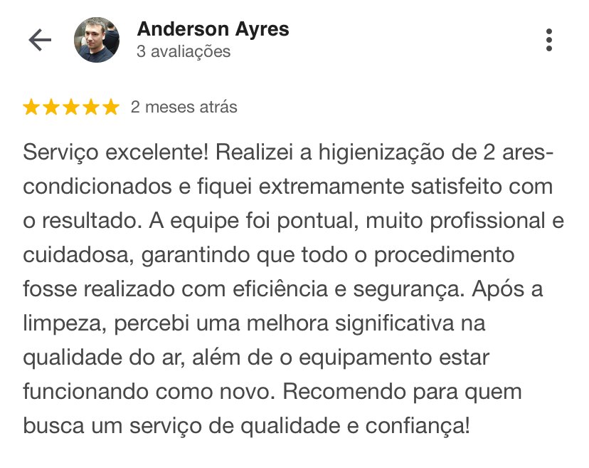 Recomendamos realizar a higienização de ar-condicionado ao menos uma vez por ano. No entanto, se o aparelho for utilizado com frequência ou exposto a ambientes mais sujos, a cada 3-6 meses é uma boa prática, tanto para residências quanto para ambientes comerciais.